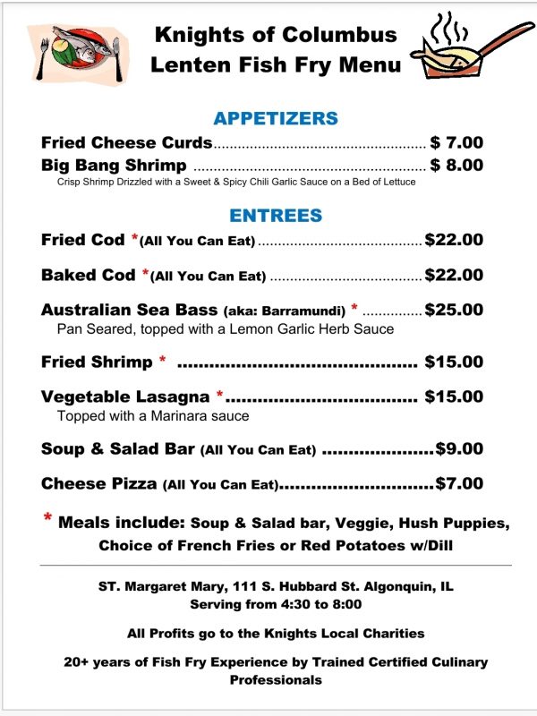 Our StMM Knights of Columbus are going to be having their famous fish fries again this Lenten season!
